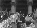Nadejda,Eudoxia and Cyril going out of the temple Alexander Nevski.