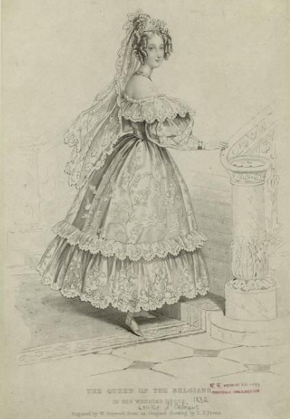 From the always interesting site Cross of Laeken (all credits to it), Queen Louise Marie in wedding gown